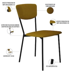 Color: Amarelo | ColorFamily: Amarelo | ColorSimple: Amarelo | ColorSupplier: Mostarda | Material: Estrutura em Aço, MDP, Revestimento em Linho e espuma | MaterialFamily: Aço, MDP, Linho e espuma | Model: Village | OriginCountry: Brasil | OriginState: PR | ProductContents: 01 Cadeira | ProductHeight: 83 cm | ProductInstructions: Produto para uso em ambiente interno, nao devendo ficar exposto ao sol, calor e umidade excessivos. | ProductLength: 53 cm | ProductWarranty: 90 dias após o recebimento do produto | ProductWeight: 6,5 kg | ProductWidth: 43 cm | SizeDescription: Altura: 83 cm x Largura: 43 cm x Profundidade: 53cm | SupplierSimpleName: Cadeira Estofada Para Sala de Jantar Village Preto C01 Linho Mostarda - Lyam Decor