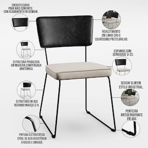 O espetáculo que é a Cadeira Decorativa Estofada Sala De Jantar Allana L02 Couríssimo Preto Linho Cru - Lyam Decor vem para agregar ainda mais valor na decoração da sua casa. Sua estrutura em aço remete-nos ao estilo industrial que surgiu em Nova York no século XX, já o assento e encosto estofados trazem equilíbrio e conforto criando a combinação perfeita para o ambiente.