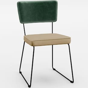 Revestimento do encosto em Facto Verde Musgo de alta qualidade, com acabamento semi brilho.