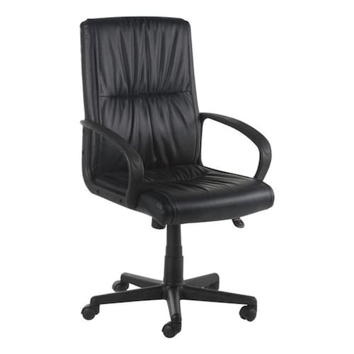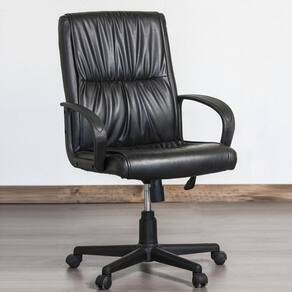 Vendo cadeira de escritorio executiva na cor preta, modelo Ventura da linha Executiva da Just Home Collection. Feita de couro sintetico, possui uma estrutura resistente de polipropileno, apoio de braco e encosto medio. Suporta ate 110 kg e possui regulagem de altura. Sua base e giratoria, garantindo maior mobilidade. Com dimensoes de 93x68x61 cm, e ideal para uso interno. Produto importado com garantia de 12 meses. Alem disso, e um item elegante e confortavel para compor seu ambiente de trabalho.