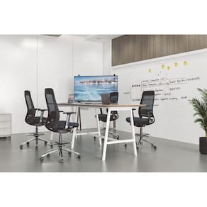 Cadeira de escritório de alta qualidade com opção de costas altas ou médias. Apresenta costas em malha coreana que proporcionam ventilação e um assento de espuma moldada com revestimento em tecido para conforto ergonômico.: