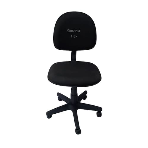 Cadeira executiva giratoria pistão a gás com base de ferro tecido preto Cadeira de escritório Executiva - regulagem de altura a gás - espuma injetada - revestida em tecido j.Serrano anti-chama - bordas em pvc flexivel - pintura eletrostatica - base de ferro com capa Marca: Sintonia Flex