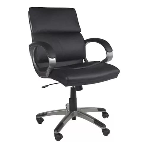 Esta cadeira executiva também possui rodas para fácil mobilidade e um mecanismo de pistão a gás para ajuste de altura, permitindo que você a personalize de acordo com suas preferências. Com um design executivo e um encosto de altura média, a cadeira oferece conforto e suporte adequados para sessões de trabalho produtivas.