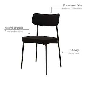 Sobre o ProdutoCadeira Fixa Estofada Mynna CD4PMY50 Tecido-Est.AçoDescrição do Produto:A Cadeira Mynna é uma peça que alia sofisticação e funcionalidade. Com estrutura em tubos de aço cortados e soldados a laser, oferece um design robusto e moderno, perfeito para ambientes contemporâneos. Seu encosto anatômico proporciona conforto extra, enquanto as opções de acabamento em tecido ou courino permitem combinações elegantes e versáteis. Ideal para dar um toque de estilo e aconchego em qualquer espaço, a Cadeira Mynna é uma escolha refinada para compor seu ambiente com personalidade e bom gosto.A linha Metalig Design oferece móveis e cadeiras de design exclusivo, desenvolvidos por uma equipe própria de designers e projetistas. Combinando inovação, alta qualidade e durabilidade, cada peça é feita com materiais sustentáveis e acabamento superior, garantindo elegância e funcionalidade para transformar qualquer ambiente. Metalig, arte em aço que democratiza o design.Itens Inclusos:1 CadeiraDimensões dos Produtos:Cadeira Fixa Estofada Mynna CD4PMY50 Tecido-Est.Aço: 49,5 x 52 x 79 cmInformações Logísticas (Comp. X Prof. X Alt.):Vol.01: 81 x 65 x 13,5 cm Peso: 6,2 KgPeso Total: 6,2 KgObservações:Não acompanha acessórios decorativos. Imagens meramente ilustrativas.Informações Técnicas / Características: Cor do Produto: Tecido-Est.Aço Cor do Predominante: Revestido Marca: Metalig Modelo: CD4PMY50 Linha: Metalig Design Material Principal / Composição: Aço/Madeira Multilaminada/MDP/Espuma/Tecido Material / Estrutura do Encosto: Madeira Multilaminada Material da Estrutura / Pés: Aço Acabamento Estrutura: Epóxi-Pó Tipo do Encosto: Fixo Anatômico Revestimento Encosto: Tecido Tipo do Assento: Fixo Material / Estrutura do Assento: MDP Enchimento Assento: Espuma D-28 Revestimento Assento: Tecido Possui Braços: Não Tipo: Cadeira Modelo: Fixo Empilhável: Não Dobrável: Não Ambiente Principal: Sala de Estar / Jantar Estilo: Contemporâneo Enchimento Encosto: Espuma D-22 Suporta Até (kg): 120kg Comprimento: 49,5cm Profundidade: 52cm Altura: 79cmAltura do Assento até o chão: 48cm Altura do Encosto até o chão: 57cm Dimensões do Assento: 46x45x6,5cmcm Dimensões do Encosto: 49,5x21x4,5cmcm Peso Líq.: 5,28Kg Recomendações de Uso, Manutenção e Limpeza: Para a limpeza, utilize flanela seca ou pano macio levemente umedecido em água. Utilize um pano seco em seguida. Evite contato com produtos químicos (solventes, thinner, acetona, etc) e não utilize nenhum tipo de esponja de aço. Necessita de Montagem: Sim / Acompanha Manual de Montagem Complexidade da Montagem: Média: pode ser montado por mais de uma pessoa e/ou necessite de maior conhecimento para montagem. Garantia: 6 meses