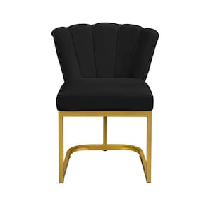 Cadeira Flor Base Industrial Dourada Veludo - Vallisa Decor - Preto