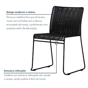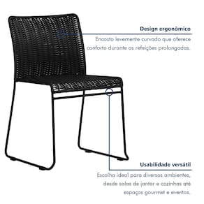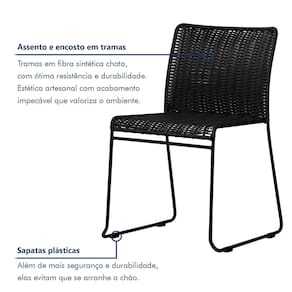 Cadeira empilhável, a Fronteira é feita de aço tubular pintado e trama em fio sintético trançado à mão. Disponível em várias opções de cores, nesta opção ela é apresentada monocromática, base e assento de mesma cor, perfeita para qualquer ambiente. Simples design que alia a tradição dos costumes à modernidade. Acabamento da Estrutura: Pintura Altura do assento até o chão: 46 cm Ambiente Principal: Sala de Jantar codigo_ean: 7909903207178 Cor: Preto Cor do Produto: Preto Dobrável: Não Escala de Brilho: Semi-Fosco Estrutura do Encosto: Fibra Sintética Informações Complementares: Pequenas variações de tonalidade de cor são intrínsecas ao produto, e não podem ser consideradas defeito.Para aprimoramento de projeto, os produtos podem sofrer modificações. Itens Inclusos: Produto montado Linha ou Coleção: Fronteira Material da Base: Aço Inox Material Principal: Metal Necessita Montagem: Não Origem do Produto: Nacional Peso: 2,2 kg Possui Apoio para Braços: Não Possui Apoio Para os Pés: Não Possui Rodízio: Não Quantidade de Itens: 1 Recomendações de Uso, Manutenção e Limpeza: A estrutura deve ser limpa utilizando pano seco de algodão ou flanela. Se necessário, utilize pano umedecido apenas com água, secando o móvel em seguida.Não utilize solvente, álcool, acetona, lustra móveis, produtos abrasivos e outros produtos que contenham soda e ou ácidos para limpar e tirar manchas dos móveis.Não expor os móveis à luz solar e ambientes com umidade relativa elevada.Manter a estrutura metálica limpa, utilizando pano seco ou cera a base de silicone. Tipo de Assento: Fixo Tipo de Encosto: Fixo Marca: Não Informado