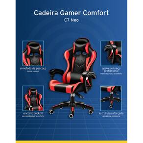 A Cadeira Gamer C7 Neo Comfort eleva sua experiência de jogo e trabalho com um nível superior de ergonomia, sofisticação e conforto. Projetada para quem busca desempenho e durabilidade, essa cadeira combina um design moderno e premium com materiais de alta qualidade para transformar seu setup.
