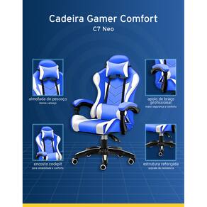 A Cadeira Gamer C7 Neo Comfort eleva sua experiência de jogo e trabalho com um nível superior de ergonomia, sofisticação e conforto. Projetada para quem busca desempenho e durabilidade, essa cadeira combina um design moderno e premium com materiais de alta qualidade para transformar seu setup.