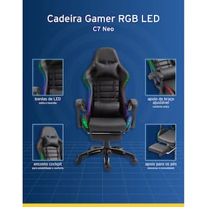 Seja para dominar seus adversários ou para relaxar após um dia intenso, a Cadeira Gamer C7 Neo RGB LED transforma seu espaço em um verdadeiro santuário de tecnologia e conforto!
