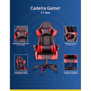 Revestida em couro sintético de alta qualidade, a Cadeira Gamer C7 Neo combina sofisticação e durabilidade. Seu estofamento em espuma moldada garante conforto prolongado, tornando-a a opção perfeita para quem busca desempenho e ergonomia no setup gamer ou no escritório.