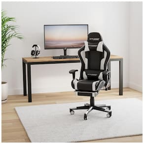 Design ergonômico estrutura de metal forte projetada para ajudar a promover uma posição sentada confortável, mantendo você confortável após longas horas de jogo ou trabalho. O encosto e o assento acolchoados espessos e o apoio para os pés retrátil são perfeitos para relaxar.