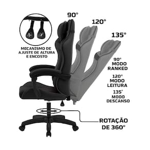 Com reclinação de 80° a 135°, a cadeira permite alternar entre concentração total e momentos de relaxamento. Perfeita para quem precisa de versatilidade ao longo do dia.