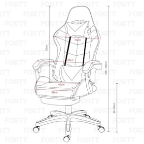 Linha: Xiamen | Modelo: CGF022-A | Base: Plástico | Marca: Fortt | Categoria: Gamer | Encosto reclinável: Sim | Graus de inclinação: 135 graus | Ajuste de altura: Sim | Densidade da espuma: 60kgs/m3 | Revestimento: Couro PU | Estrutura: Aço com madeira | Peso suportado: 120kg | Travesseiro para lombar e cabeça: Sim