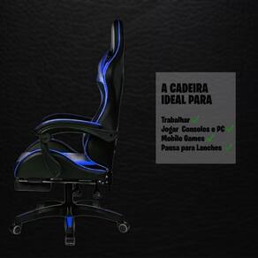 01 Cadeira NSX Black Blue Preta e Azul A cadeira gamer com apoio para os braços é um tipo de cadeira projetada para fornecer conforto e suporte adequado ao usuário durante longas sessões de jogos ou trabalho em frente ao computador. Ela apresenta suporte acolchoado para os braços, permitindo que o usuário descanse os braços confortavelmente e ajuste a altura e posição dos apoios de acordo com sua preferência. Além disso, a cadeira possui encostos curvos e altos que moldam-se à forma do corpo, oferecendo suporte para as costas e pescoço, e assentos ajustáveis em altura e profundidade. Alguns modelos podem apresentar almofadas lombares removíveis e ajustáveis, apoios para a cabeça acolchoados e recursos de inclinação e balanço. Em resumo, a cadeira gamer com apoio para os braços é uma excelente escolha para quem busca conforto e suporte durante longas horas de uso do computador. Material do corpo: PU Enchimento: Espuma Material da perna: aço inoxidável Almofada de colocação das pernas: Sim Estrutura: de Metal Ângulo rotativo: 360 Cor: vermelho / azul / branco / amarelo / Preto / Rosa Encosto:: 80 Altura 51 Largura cms Tamanho da almofada do assento: 49 Profundidade 50 Largura cms Altura de elevação: 46 a 54 cms Peso Máximo: 150kg Marca: Não Informado Ean: 762765029312