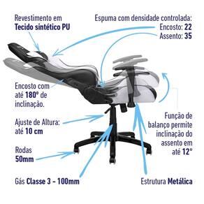 Informações Adicionais A nova linha de Cadeira Gamer Mymax, são as mais iradas do mercado, a MX5 possui design ergonômico e revestimento em tecido sintético. Projetada para proporcionar conforto mesmo após horas jogando. Esse conforto foi obtido através do uso de espuma injetada de alta densidade no encosto e assento, aliado a possibilidade de inclinar o encosto em até 180° e da função balanço.