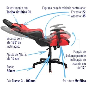 Informações Adicionais A nova linha de Cadeira Gamer Mymax, são as mais iradas do mercado, a MX5 possui design ergonômico e revestimento em tecido sintético. Projetada para proporcionar conforto mesmo após horas jogando. Esse conforto foi obtido através do uso de espuma injetada de alta densidade no encosto e assento, aliado a possibilidade de inclinar o encosto em até 180° e da função balanço.
