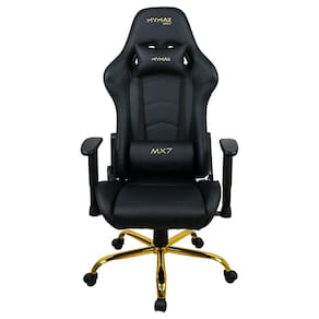 Características Marca: Mymax Nome produto: Cadeira Gamer MX7 Giratoria Preto Gold Edition Modelo: Cadeira Gamer MX7 Cor: Preto Revestimento: Estofamento em tecido sintético PU Estrutura: Metálica Superfície de Apoio: Espuma com densidade controlada - D28 Assento / D70 Encosto Peso Máximo Suportado: 150kg Ajuste Altura: Sim - 10cm Encosto Regulável: Sim - Permite inclinação de até 135º Função Balanço: Sim Gás: Classe 3 - 100mm Diâmetro Pés: 68 Rodas: Premium de alta resistência Braços: Regulagem 2D (direita/esquerda e altura) Almofadas: Lombar e de encosto de cabeça Parafusos: Altura do chão até apoio de braço: 72- 83cm Altura do chão até assento: 48 - 59cm Altura do encosto: 82cm Largura do assento: 34cm Profundidade interna do assento: 47cm EAN: 7898554985866 Informativo de Garantia: 12 meses de garantia (9 meses de garantia contratual junto ao fabricante + 3 meses referentes à garantia legal, nos termos do artigo 26, II, do Código de Defesa do Consumidor)