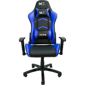 Cadeira Gamer Mymax MX5 Preto/Azul A nova linha de Cadeira Gamer Mymax, são as mais iradas do mercado, a MX5 possui design ergonômico e revestimento em couro sintético. Projetada para proporcionar conforto mesmo após horas jogando. Esse conforto foi obtido através do uso de espuma injetada de alta densidade no encosto e assento, aliado a possibilidade de inclinar o encosto em até 180° e da função balanço. Peso 19.5 kgDimensões 72 × 127-137 × 75 cmMarca: MymaxModelo : Cadeira Gamer MX5Cor: Preto/VermelhoRevestimento: Estofamento de couro sintético PUEstrutura: MetálicaSuperfície de Apoio: Espuma com densidade controladaDensidade Assento: D35Densidade Encosto: D22Peso Máximo Suportado (Kg): 150Ajuste Altura: Sim - 10cmEncosto Regulável: Sim - Permite inclinação de até 180°Função Balanço : Sim - Função de balanço permite inclinar o assento em até 12°Gás: Classe 2 - 100mmDiâmetro Pés: 70cmBraços: Regulagem 2D (direita/esquerda e altura)Almofadas: Almofadas para apoio lombar e de pescoço. Ambas com logo bordadoAltura do chão até apoio de braço (cm) (mínimo - máximo): 59 - 76Altura do chão até assento (cm) (mínimo - máximo): 45 - 55Altura do encosto (cm): 85Largura interna do assento (cm): Interna 34 / Externa 53Profundidade do assento (cm): Interna 34 / Externa 53Peso Embalagem (kg): 21Dimensão Embalagem (LxAxP cm): 85 x 32 x 65Quantidade Produtos Caixa Master: 01EAN: 7898554984081