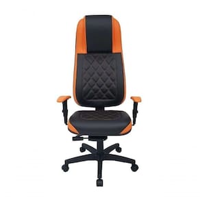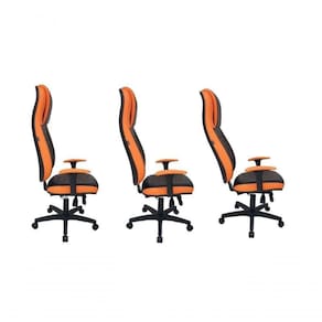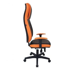 Cadeira Gamer para Escritório e Home Office sendo encosto revestido com gomos costurados preto Cor: Laranja com Preto - Tonalidade da Cor: Laranja com Preto- Linha Gamer Blenda - Marca: Design Office Móveis