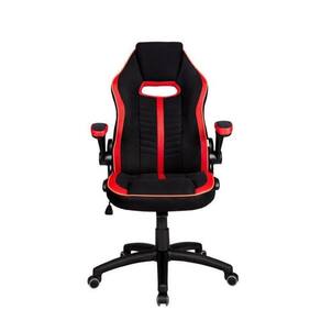 Braços em polipropileno, estofado e revestido em tecido Preto e Vermelha, podem ser movidos para trás quando não necessários;