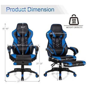 Ajuste à vontade A faixa de ajuste de altura do assento da cadeira de jogos ergonômica é de 43 a , o que pode atender às suas necessidades diárias. A faixa de ajuste do encosto é de 90 graus a 155 graus, que pode ser inclinada para uma posição adequada para trabalhar, assistir TV ou descansar. A cadeira de jogo multifuncional pode melhorar sua experiência de jogo.