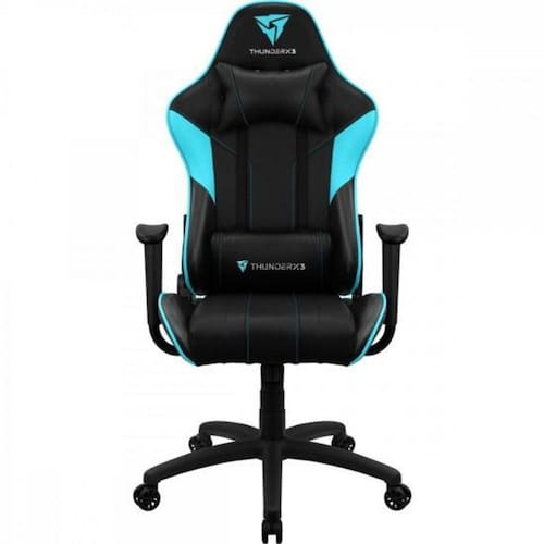 Cor:Cyan Material:Poliuretano, metal, nylon, espuma Dimensões:Geral: 69 x 70 x 121-131 cm Encosto: 56 x 81 cm Assento: 53 x 54 x 47-57 cm Braços: 69 x 64-74 cm Pesquisa:cadeira | gamer | ec3 | thunderx3