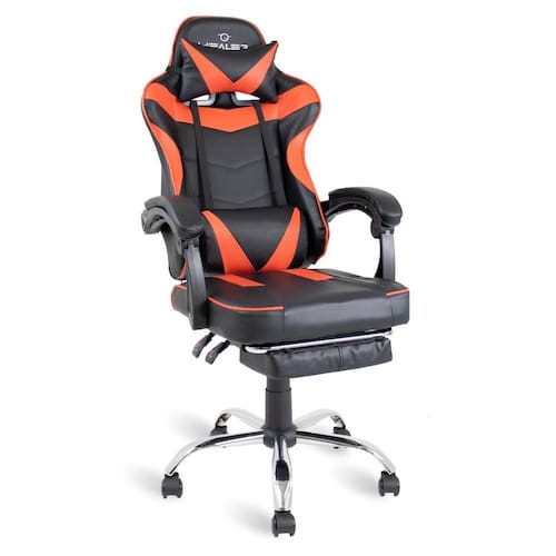 Cadeira Gamer Vermelho e Preto Healer Level Reclinável Giratória com apoio de pés