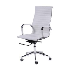 Cadeira Giratória Alta Office Esteirinha Em Pu Branco Base Rodízio Cromado