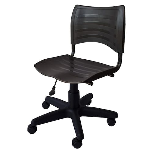 Possui rodízios em PP Polipropileno , estrela de aço com pintura epóxi na cor preta, capa de proteção, pistão com acionamento à gás, telescópio de 3 estágios, flange secretária padrão, estrutura de aço com pintura epóxi na cor preta, assento e encosto em PP Polipropileno modelo Iso. Marca: Metalwood