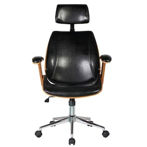 Cadeira Giratória Lisboa Bergen Rivattis C/ Encosto De Cabeça Madeira Laminada Pu Preto Base Rodízio