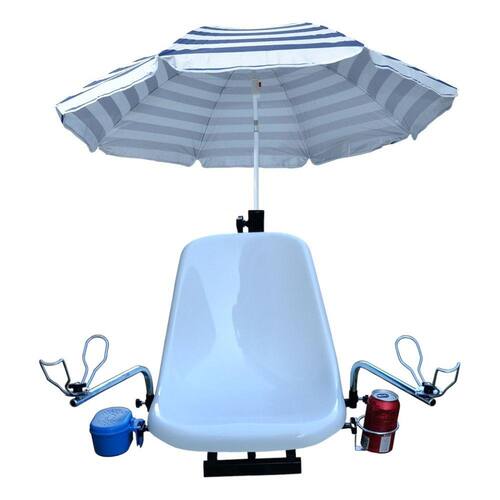 Descrição do produto: Cadeira giratória para barco com assento anatômico em polipropileno azul, proporcionando maior conforto e segurança para sua pescaria. Base com encaixe ajustável por molas, com abertura de 29cm até 50 cm. Apresenta acabamento de qualidade, leve, compacta e confortável. Super prática.