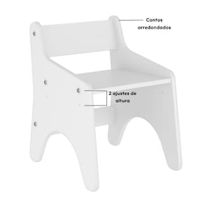 Parafusos ficam a mostra, por segurança não foram utilizados tapa-furos. Montagem por conta do cliente. Altura dos Pés: 33 cm Altura Máxima dos Pés: 33.0000 Ambiente Principal: Quarto Infantil Antiderrapante: Não codigo_ean: 7908506221567 Complexidade da Montagem: Baixa: pode ser montado por uma pessoa sozinha Cor: Branco Cor do Produto: Branco Desmontável: Sim Dimensões do assento: 35x33 Dobrável: Não Escala de Brilho: Fosco Itens Inclusos: 1 Cadeira, Manual de Montagem e Kit Ferragens Manual de Montagem e Instalação: https://product-hub-prd.madeiramadeira.com.br/683965/documents/dcf78335-4c15-46bb-87da-ce95b17c8e16799023p21caderinhacencosto.pdf Material Principal: MDP Necessita Montagem: Sim Origem do Produto: Nacional Peso: 7 kg Possui Apoio para Braços: Não Possui Apoio Para os Pés: Não Possui Encosto: Sim Quantidade de Itens: 1 Quantidade de Pés: 02 Recomendações de Uso, Manutenção e Limpeza: Pano levemente umedecido com álcool 70% Sistema de Montagem: Parafusos, cavilhas Ean: 7908506221567