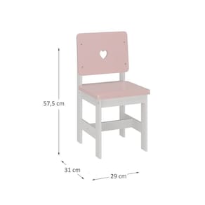 A cadeira Sofia une design encantador com estrutura reforçada, foi desenvolvida com atenção aos detalhes e aos mais altos padrões de qualidade, escolha certa para quem busca durabilidade e conforto. Ideal para uso com mesas infantis, em espaços de brincar, estudar ou desenhar, perfeita para residências, escolas, brinquedotecas e ambientes pedagógicos. Produzida com laterais em madeira maciça de pinus, assentos/encosto em mdf com cantos arredondados e montagem firme, acabamento em esmalte branco/rosa com brilho fosco, detalhe vazado em forma de coração no encosto que dá um toque lúdico e delicado. Testada e Aprovada pelo SENAI, conf. requisitos da norma FIRA/FRQG C002:2016 A1:2017, que inclui teste estabilidade, carga estática no assento/encosto e resistência a impactos e cargas laterais Acabamento: Laca Acabamento da Estrutura: Laca Altura do assento até o chão: 29 cm Altura dos Pés: 29 cm Altura Máxima dos Pés: 29.0000 codigo_ean: 7900288197979 Complexidade da Montagem: Baixa: pode ser montado por uma pessoa sozinha Cor: Branco/Rosa Cor do Produto: Branco/Rosa Cor dos Pés: Branco Dimensões do assento: 29x29x1,5 cm Dobrável: Não Escala de Brilho: Fosco Estrutura do Assento: MDF Estrutura do Encosto: MDF Giratória: Não Itens Inclusos: 1 Cadeira e Kit Ferragens Linha ou Coleção: Sofia Manual de Montagem e Instalação: https://product-hub-prd.madeiramadeira.com.br/598006973/documents/709505e3-cbfa-406e-ac0c-2f61417eac0c3087074574417531904085924.pdf Marca: Empório Paraíso Material dos Pés: Madeira Material Principal: Madeira Maciça Necessita Montagem: Sim Origem do Produto: Nacional Peso: 3,1 kg Possui Apoio para Braços: Não Possui Apoio Para os Pés: Não Possui Assento/Encosto Estofados: Não Possui Espaldar: Não Quantidade de Itens: 1 Recomendações de Uso, Manutenção e Limpeza: Limpar com pano seco para retirar o pó. Não aplicar produtos abrasivos Sistema de Montagem: Parafusos, cavilhas, chave allen Tipo de Assento: Fixo Tipo de Certificado: FIRA/FRQG C002:2016 + A1:2017 Tipo de Encosto: Fixo Tipo de Madeira Maciça: Pinus Marca: Não Informado