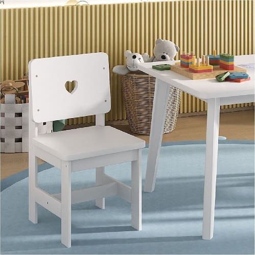 A cadeira Sofia une design encantador com estrutura reforçada, foi desenvolvida com atenção aos detalhes e aos mais altos padrões de qualidade, escolha certa para quem busca durabilidade e conforto. Ideal para uso com mesas infantis, em espaços de brincar, estudar ou desenhar, perfeita para residências, escolas, brinquedotecas e ambientes pedagógicos. Produzida com laterais em madeira maciça de pinus, assentos/encosto em mdf com cantos arredondados e montagem firme, acabamento em esmalte branco com brilho fosco, detalhe vazado em forma de coração no encosto que dá um toque lúdico e delicado. Testada e Aprovada pelo SENAI, conforme requisitos da norma FIRA/FRQG C002:2016 A1:2017, que inclui teste estabilidade, carga estática no assento/encosto e resistência a impactos e cargas laterais Acabamento: Laca Acabamento da Estrutura: Laca Altura do assento até o chão: 29 cm Altura dos Pés: 29 cm Altura Máxima dos Pés: 29.0000 Apoio para Braços Estofado: Não codigo_ean: 7900288198006 Complexidade da Montagem: Baixa: pode ser montado por uma pessoa sozinha Cor: Branco Cor do Produto: Branco Cor dos Pés: Branco Desmontável: Não Dimensões do assento: 29x29x1,5 cm Dobrável: Não Escala de Brilho: Fosco Estrutura do Assento: MDF Estrutura do Encosto: MDF Giratória: Não Itens Inclusos: 1 Cadeira e Kit Ferragens Linha ou Coleção: Sofia Manual de Montagem e Instalação: https://product-hub-prd.madeiramadeira.com.br/568941324/documents/b6c38b05-7d68-46ab-9402-7507cd3bc25c3087496574417531927219013.pdf Marca: Empório Paraíso Material dos Pés: Madeira Material Principal: Madeira Maciça Necessita Montagem: Sim Origem do Produto: Nacional Peso: 3,1 kg Possui Apoio para Braços: Não Possui Apoio Para os Pés: Não Possui Assento/Encosto Estofados: Não Possui Encosto: Sim Possui Espaldar: Não Quantidade de Itens: 1 Quantidade de Pés: 04 Recomendações de Uso, Manutenção e Limpeza: Limpar com pano seco para retirar o pó. Não aplicar produtos abrasivos Sistema de Montagem: Parafusos, cavilhas, chave allen Tipo de Assento: Fixo Tipo de Certificado: FIRA/FRQG C002:2016 + A1:2017 Tipo de Encosto: Fixo Tipo de Madeira Maciça: Pinus Marca: Não Informado