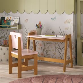 Estruturas em madeira maciça de pinus com acabamento em verniz, pintura que preserva a cor natural do produto , as partes produzidas em MDF são laqueadas com brilho fosco Acabamento: Verniz Acabamento da Estrutura: Verniz Almofada do assento: Fixa Altura do assento até o chão: 29 cm Altura dos Pés: 29 cm Ambiente Principal: Quarto Infantil Apoio para Braços Estofado: Não Complexidade da Montagem: Baixa: pode ser montado por uma pessoa sozinha Cor: Rosa Com Mel Cor do Produto: Rosa Com Mel Cor dos Pés: Amadeirado Desmontável: Não Dimensões do assento: 29,5x29,5x1,5 cm Dobrável: Não Escala de Brilho: Semi-Brilho Estrutura do Assento: MDF Estrutura do Encosto: MDF Giratória: Não Itens Inclusos: NÃO Linha ou Coleção: SOFIA Manual de Montagem e Instalação: https://product-hub-prd.madeiramadeira.com.br/913569/documents/6e8b8dbc-62a6-48f2-b14d-d9d26b9d03ca20357195744171802317338.pdf Material dos Pés: Madeira Material Principal: MDF Necessita Montagem: Sim Origem do Produto: Nacional Peso: 3,1 kg Possui Apoio para Braços: Não Possui Encosto: Sim Possui Rodízio: Não Quantidade de Pés: 04 Recomendações de Uso, Manutenção e Limpeza: Limpar com pano seco para retirar o pó. Não aplicar produtos abrasivos Sistema de Montagem: Parafusos, cavilhas, chave allen Tipo de Assento: Fixo Tipo de Encosto: Fixo Tipo de Madeira Maciça: Pinus Marca: Empório Paraíso