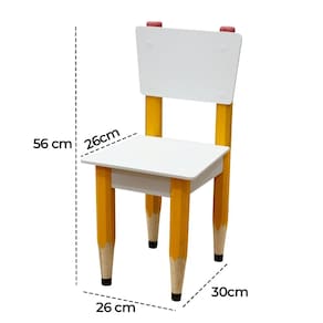 Cadeira Infantil Lápis Amarelo Assento e Encosto Brancos Para Estudos e Desenhos Mobília Decor