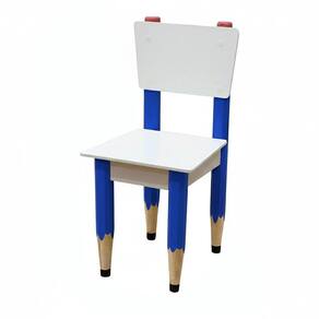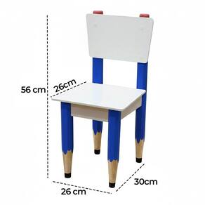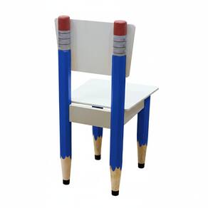 Cadeira Infantil Lápis Azul Assento e Encosto Brancos Para Estudos e Desenhos Mobília Decor