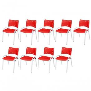 KIT 9 CADEIRA ISO EMPILHAVEL BASE BRANCO ESCRITORIO, , - VERMELHO