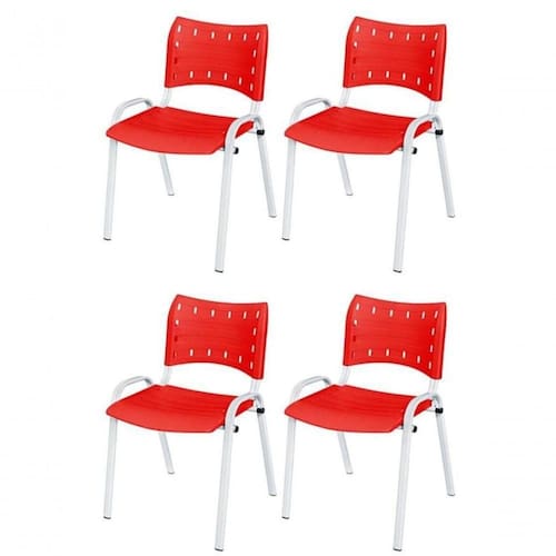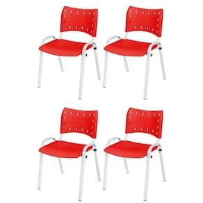 Cadeira Iso Base Branco Igreja, Escola, Escritório - Vermelho Kit 4 Peças