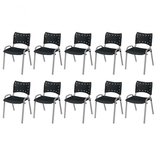 KIT 10 CADEIRA ISO EMPILHAVEL BASE CINZA ESCRITORIO, , - PRETO