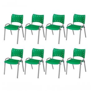 KIT 8 CADEIRA ISO EMPILHAVEL BASE CINZA ESCRITORIO, , - VERDE