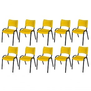 KIT 10 CADEIRA ISO EMPILHAVEL BASE PRETO ESCRITORIO, , - AMARELO