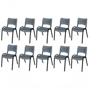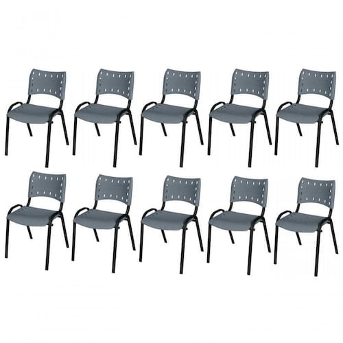 KIT 10 CADEIRA ISO EMPILHAVEL BASE PRETO ESCRITORIO, , - CINZA