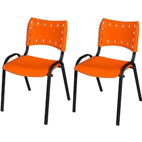KIT 2 CADEIRA ISO EMPILHAVEL BASE PRETO ESCRITORIO, , - LARANJA