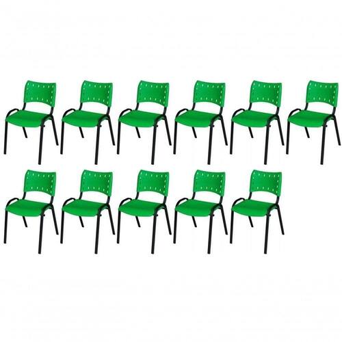 KIT 11 CADEIRA ISO EMPILHAVEL BASE PRETO ESCRITORIO, , - VERDE