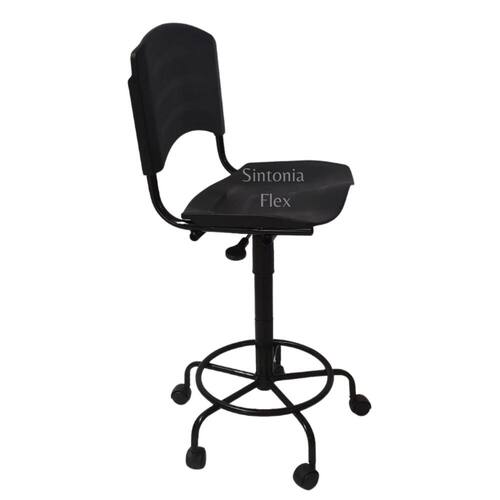 Cadeira iso caixa alta fixa desmontável - base de ferro e rodízio preta pra recpçao balcao mercado Cadeira iso - assento e encosto em polipropileno - regulagem de altura a gás - estrutura em aço com acabamento em pp - pintura eletrostática - aro para apoio dos pés - base de ferro com rodizios e prolongador de altura Medidas do produto do montado do chão ao assento: Mínima: 63 cm Máxima: 75 cm Marca: Não Informado