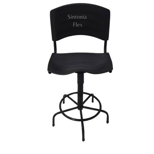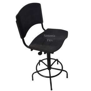 Cadeira iso caixas alta com base de ferro fixa para balcao recepçao mercado preta Cadeira iso - assento e encosto em polipropileno - regulagem de altura a gás - estrutura em aço com acabamento em pp - pintura eletrostática - aro para apoio dos pés - base de ferro fixa e prolongador de altura Medidas do produto do montado do chão ao assento: Mínima: 53 cm Máxima: 63 cm Marca: Não Informado