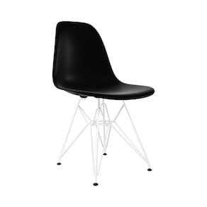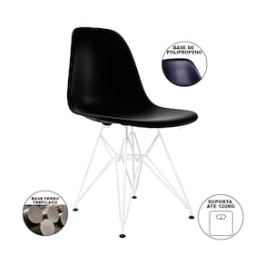 Cadeira Jantar Assento Preto Eiffel Eames Base Ferro Branco