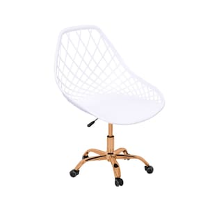A Cadeira Kaila combina conforto, praticidade e design moderno, sendo ideal para salas, quartos ou escritórios. Possui assento em polipropileno resistente e fácil de limpar, base cromada com acabamento sofisticado e rodas de PU que permitem mobilidade sem danificar o piso. O assento é regulável entre 40 e 51 cm, com altura total ajustável de 76 a 87 cm, garantindo ergonomia e conforto. Suporta até 120 kg, com largura de 49 cm e profundidade de 56 cm, unindo resistência e funcionalidade. Além da versão rose gold, a cadeira está disponível nas variações dourado brilho, dourado matte e red gold, oferecendo opções elegantes que valorizam qualquer ambiente.