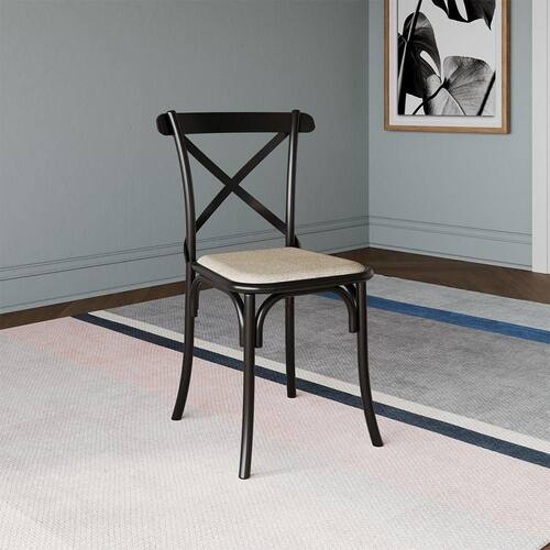 Altura: 90cmLargura: 44cmProfundidade: 44cmPeso: 5,1kgCadeira Katrina Preta Assento Corano Bege AÃo New Green